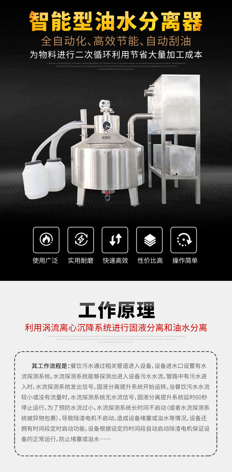 5、自動油水分離功能,渦流離心分離技術(shù):先進渦流離心技術(shù),快速油/水分子雙向分離;